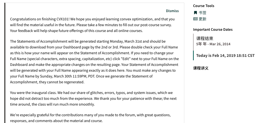 相当贴心,另外Stephen Boyd教授2014年还在斯坦福大学自家的MOOC平台上开过相关课程: CVX101