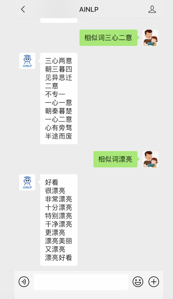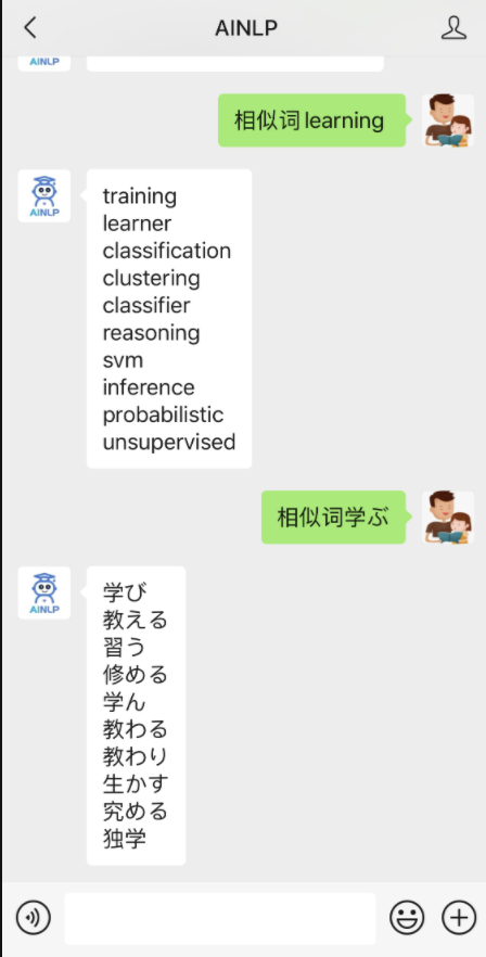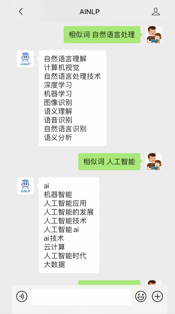 大概一年前,我在AINLP的公众号对话接口里基于腾讯800万大的词向量配置了一个相似词查询的接口: