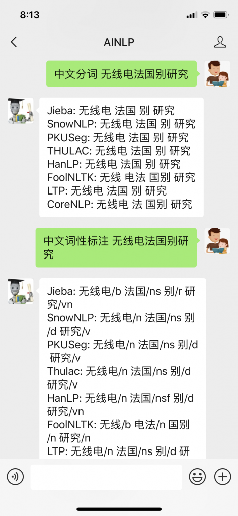赶紧用AINLP公众号后台的中文分词和词性标注测试功能试了一下八款中文分词(词性标注)工具或者模块:
