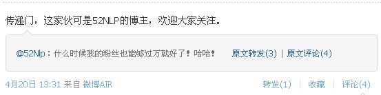 晚上无意间发现了新浪微博上有个52nlp的帐号: