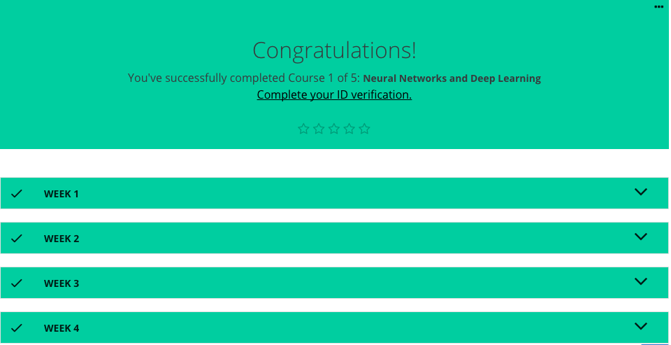 关于是否付费学习这门深度学习课程,个人觉得很值,相对于国内各色收费的人工智能课程,这门课程49美元的月费绝对物超所值,只要你有时间,你完全可以一个月学完所有课程。 特别是其提供的作业练习平台,在尝试了几个周的编程作业后,我已经迫不及待的想进入到其他周课程和编程作业了。
