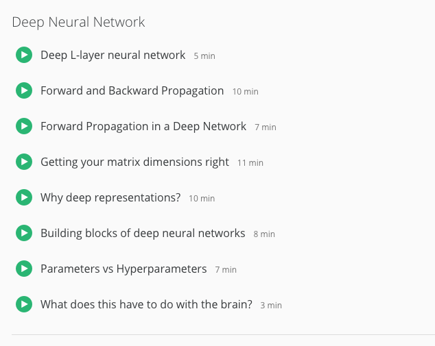 第四周课程关于“深度神经网络(Deep Neural Networks)”,主要是多层神经网络的相关概念,有了第三周课程基础,第四周课程视频相对来说比较轻松: