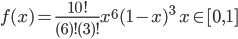 f(x) = \frac{\Gamma(\alpha+\beta)}{\Gamma(\alpha)\Gamma(\beta)}x^{\alpha-1}(1-x)^{\beta-1}